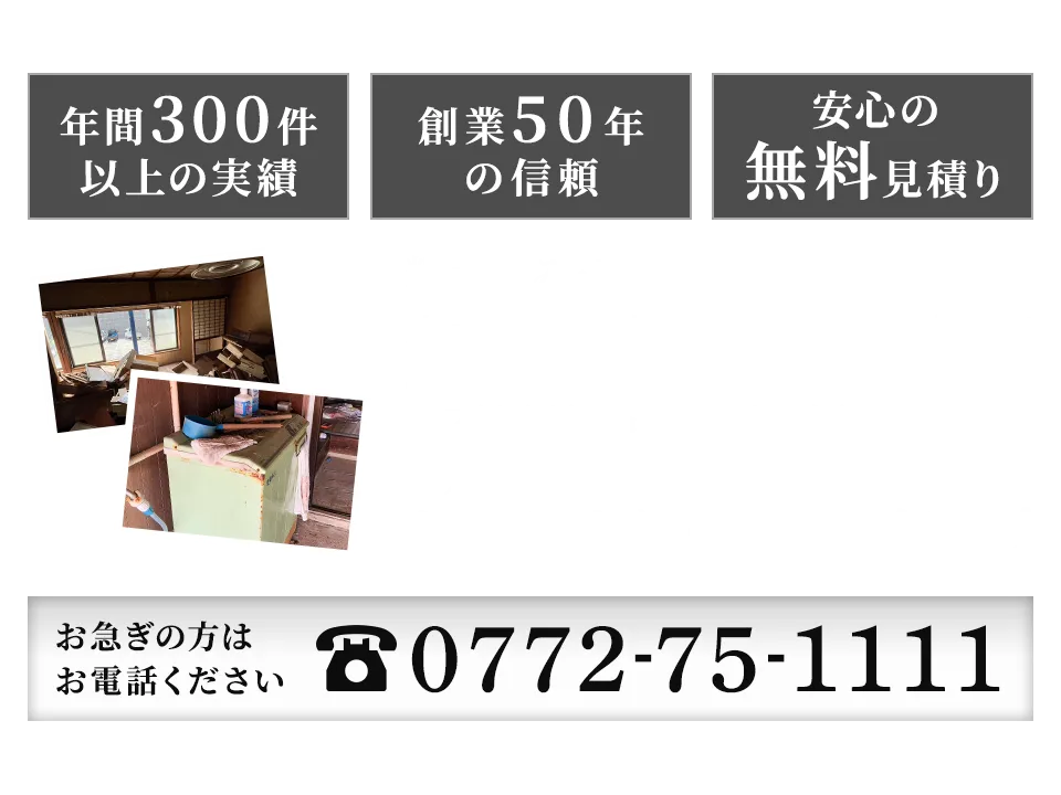 ご家庭の不用品を運搬する業者は、管轄市町村の一般廃棄物収集運搬許可を取得することが法律で義務付けられています。 弊社は京丹後市の許認可を取得しておりますので、安心してサービスをご利用いただけます。